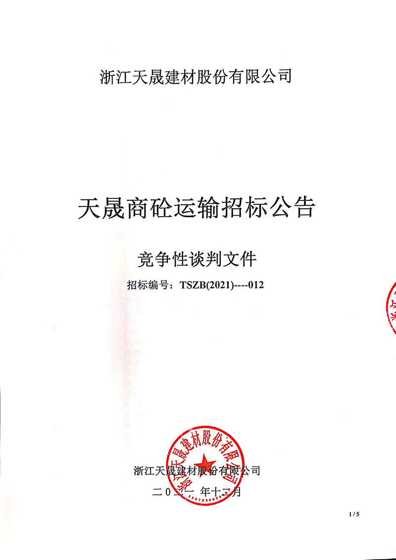 上一篇:天晟股份金華地區(qū)散裝水泥年度采購競爭性談判公告